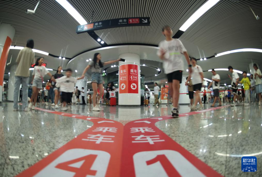 8月27日,乘客在福州地铁东街口站进行1号线和4号环线换乘。新华社记者 林善传 摄