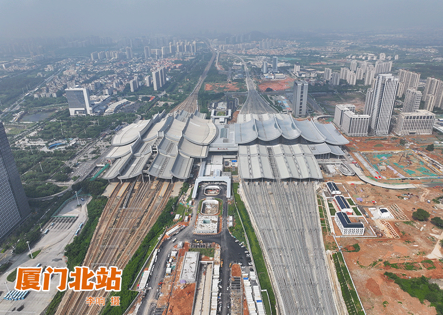 厦门北站新老站房航拍。新华网发(李响 摄)