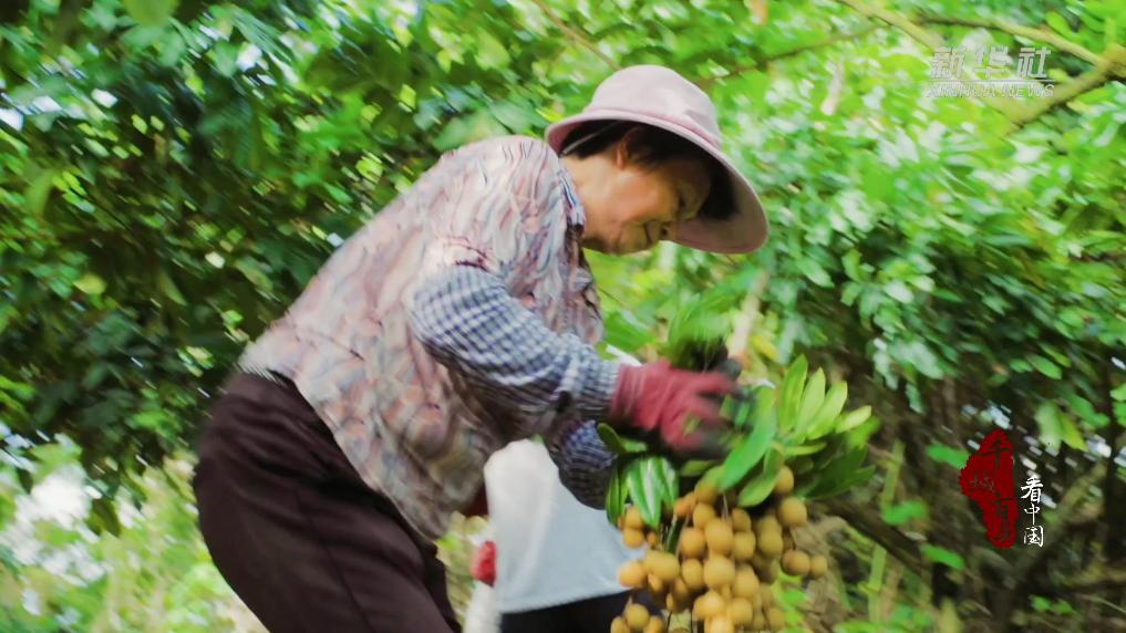 福建同安的万亩“凤梨穗”龙眼熟了!顺着道路开始,一棵又一棵龙眼树沿着山峦起伏绵延,葱郁的绿叶间,一串串黄澄澄的龙眼挂满枝头,压弯了枝条。