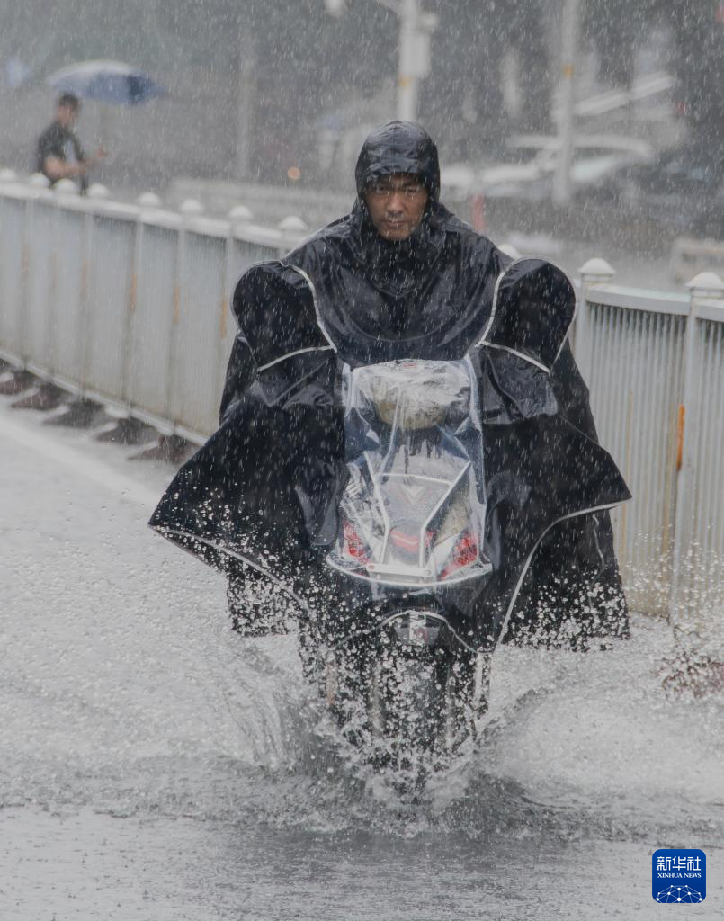 9月6日,市民冒雨骑行在福州市晋安区福新路上。新华社记者 魏培全 摄