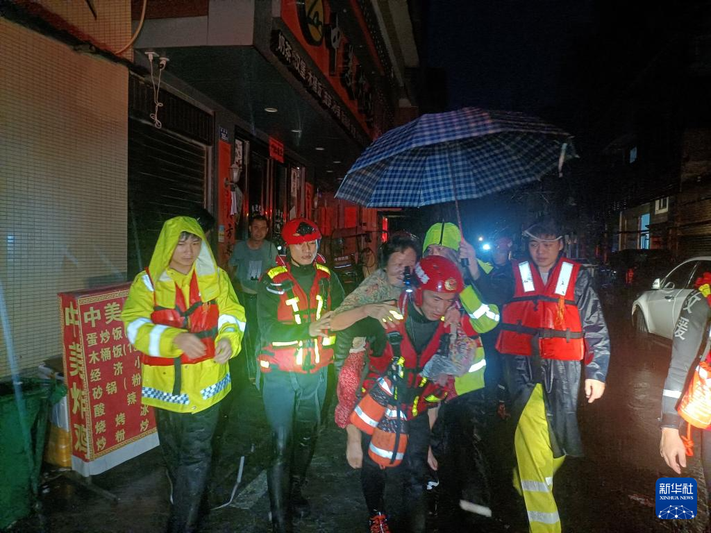 9月6日,在福州市长乐区玉田镇,消防救援人员将一名被困家中的老人背出。新华社发