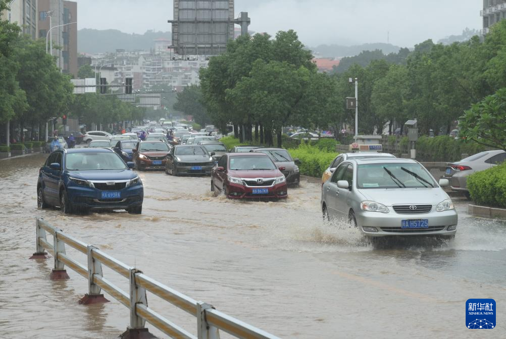 这是9月6日拍摄的福州主城区一处道路积水情况。新华社记者 林善传 摄