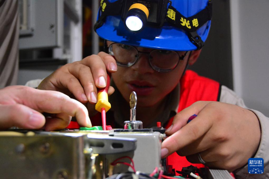 9月6日晚,检修人员在福州台江区佳源居小区的配电房里工作。新华社记者 李昊泽 摄