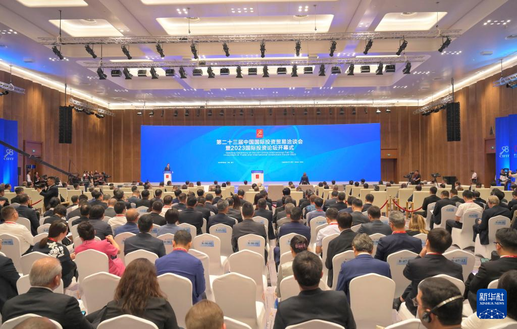 9月8日拍摄的第二十三届中国国际投资贸易洽谈会暨2023国际投资论坛开幕式现场。