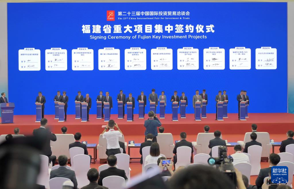 9月8日拍摄的第二十三届中国国际投资贸易洽谈会福建省重大项目集中签约仪式现场。新华社记者 林善传 摄