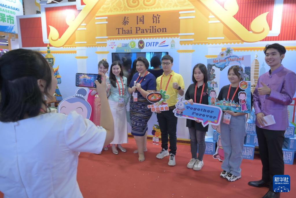 9月8日,中外嘉宾在泰国展区前合影。新华社记者 林善传 摄