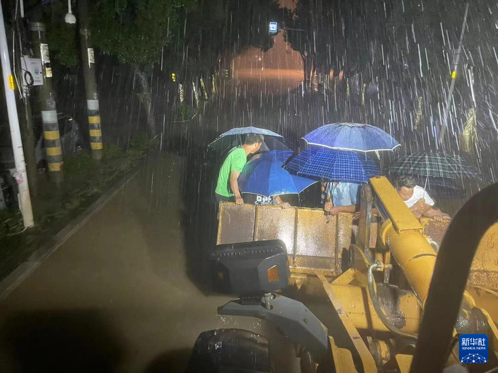 5日晚,福州市盖山镇跃进村调用铲车转移村民。(受访者供图)