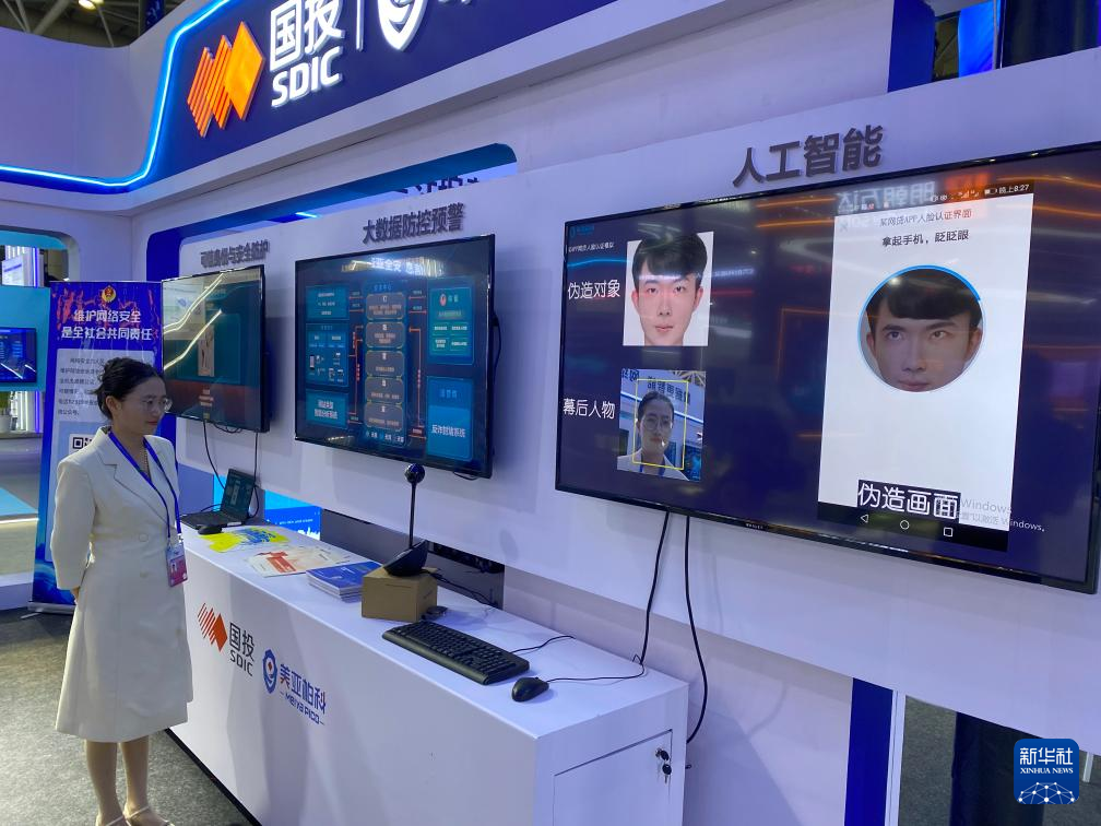 9月11日,在2023年国家网络安全宣传周网络安全博览会上,美亚柏科展区的工作人员正在演示深度伪造技术如何欺骗用户。新华社记者 颜之宏 摄