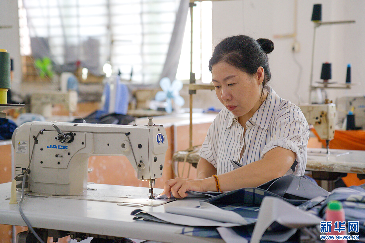 萧下村一家伞企内,工人正在缝制伞布。该村约有一半人口从事制伞业。新华网 蒋巧玲 摄