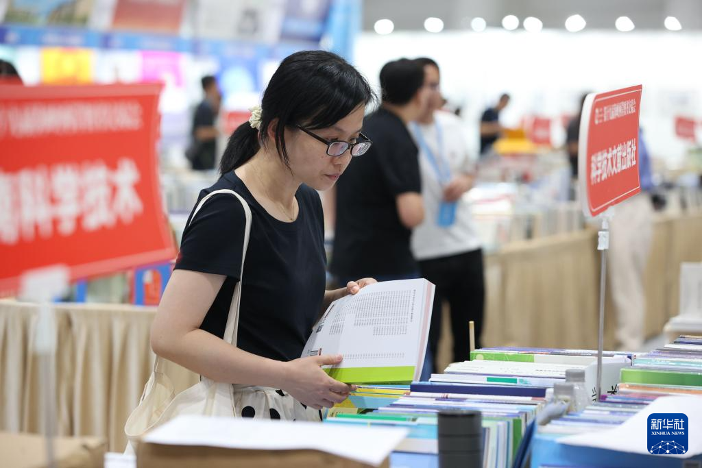9月21日,读者在第十九届海峡两岸图书交易会上阅读书籍。新华社发(曾德猛 摄)