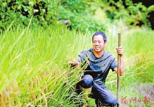 秋收号角在永泰嵩口镇邹湖村里吹响。近日,村里100多亩水稻进入成熟季,稻香四溢。
