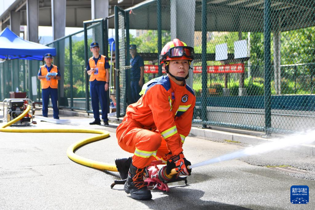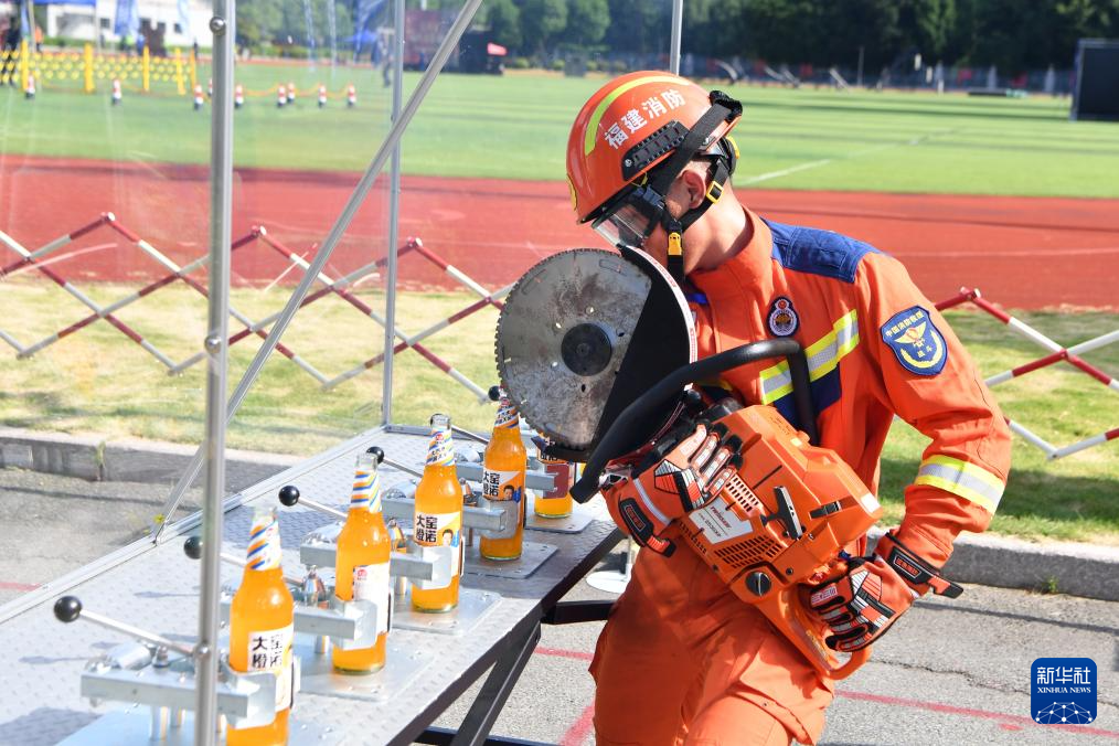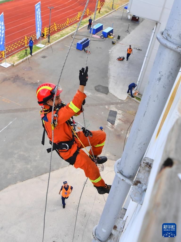 9月26日,参赛选手在进行救援技能比赛。新华社记者姜克红摄