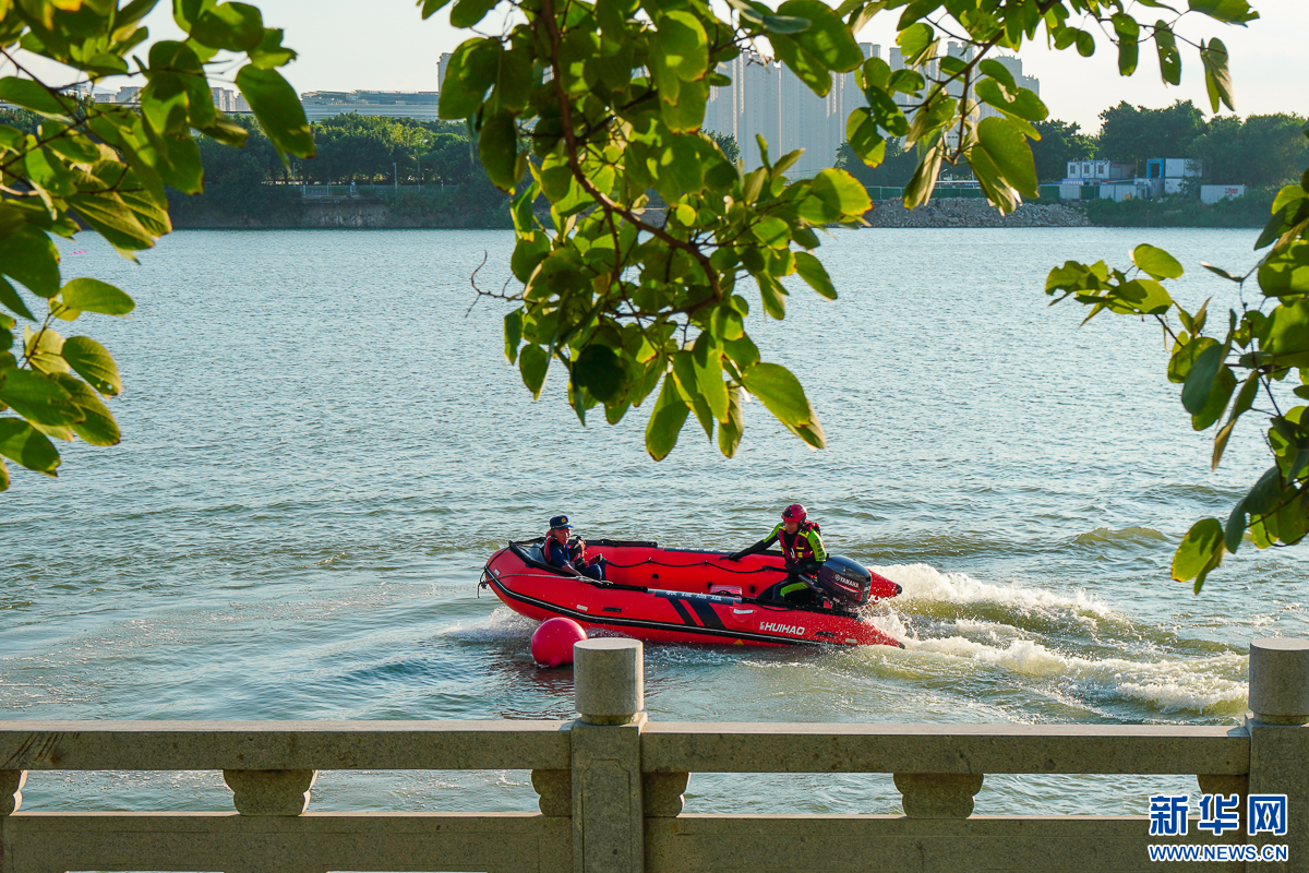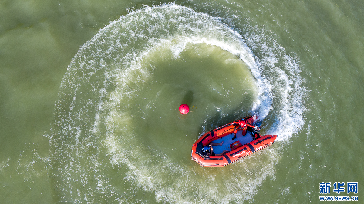 在水域救援项目竞赛中,消防员通过游泳、驾驶救援艇抵达施救水域,将假人带到岸边后,再进行急救操作。这一项目贴近实战,检验消防员舟艇驾驶、激流救援和紧急救助能力。
