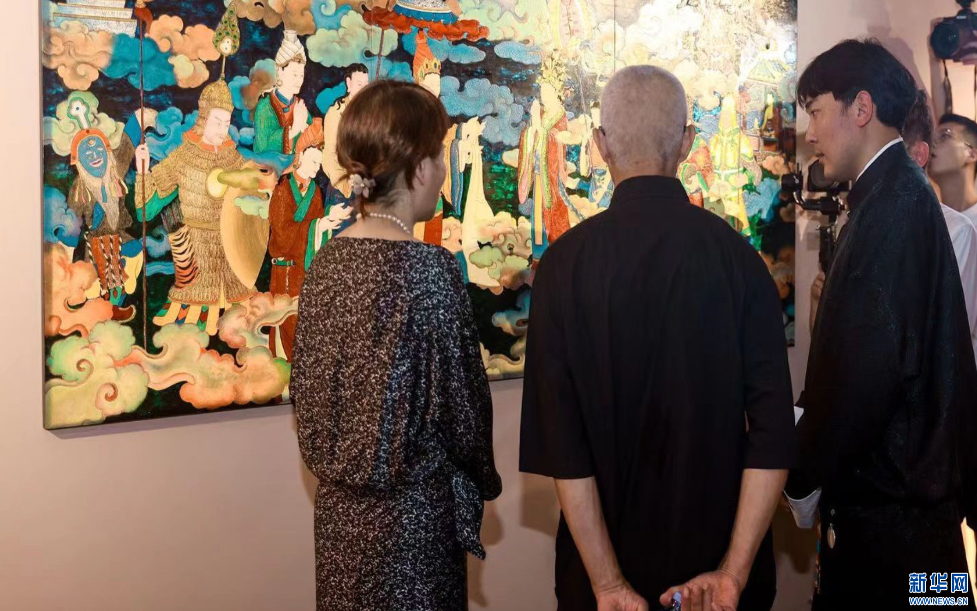 新华网福州9月27日电(陈醉)唐卡是雪域高原流传千年的艺术瑰宝,漆画是东海之滨亘古通今、独具韵味的艺术形式,二者都是中华民族弥足珍贵的非物质文化遗产。当唐卡遇上漆画,将碰撞出什么样的艺术火花?9月26日,“美美与共——闽藏唐卡漆画精品展”在福州三宝城开幕。