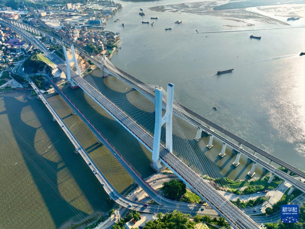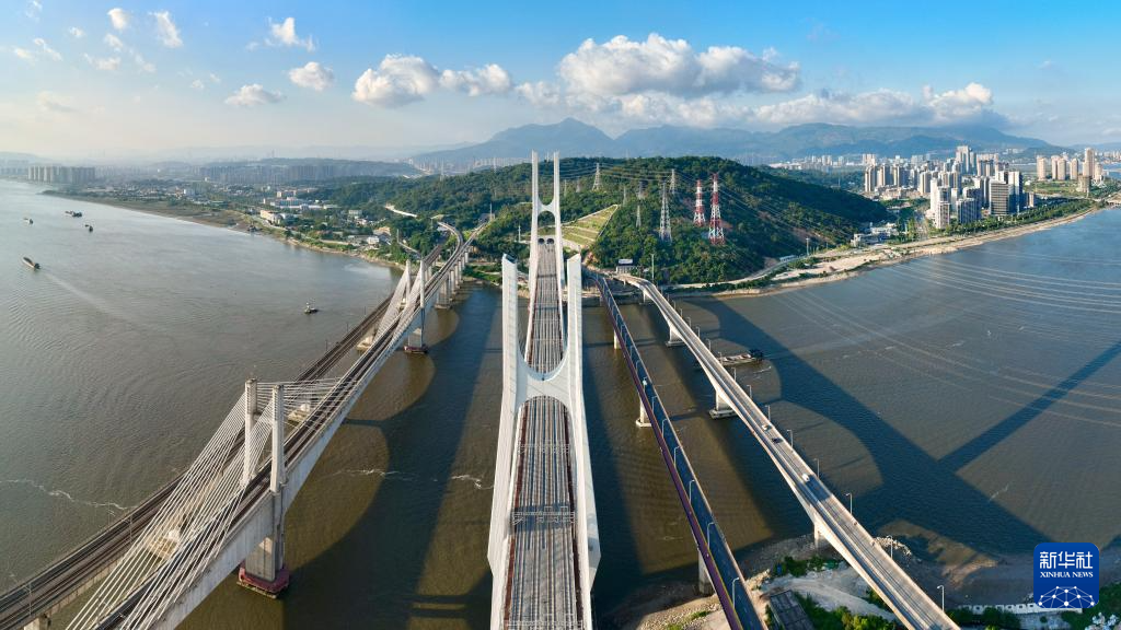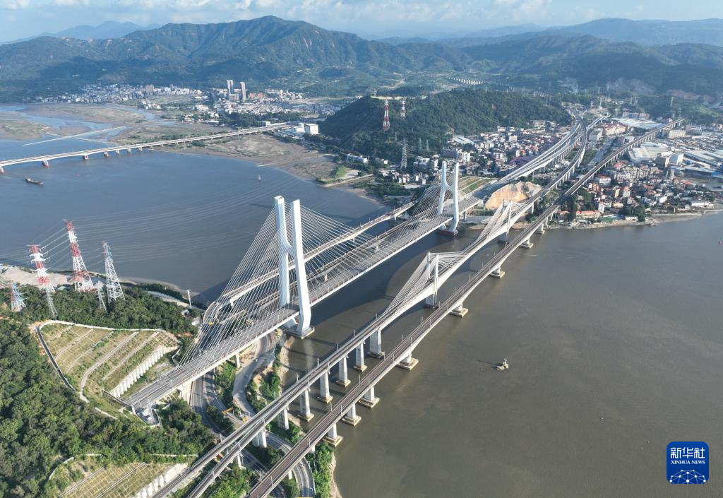 福厦高铁乌龙江大桥(中)(9月26日摄,无人机照片)。新华社记者 姜克红 摄