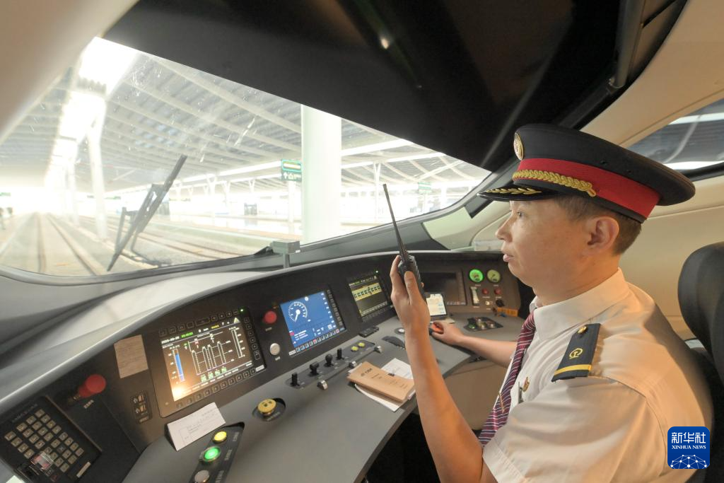 9月28日,G9801次复兴号智能动车组司机陈承仪在进行开车前的准备工作。