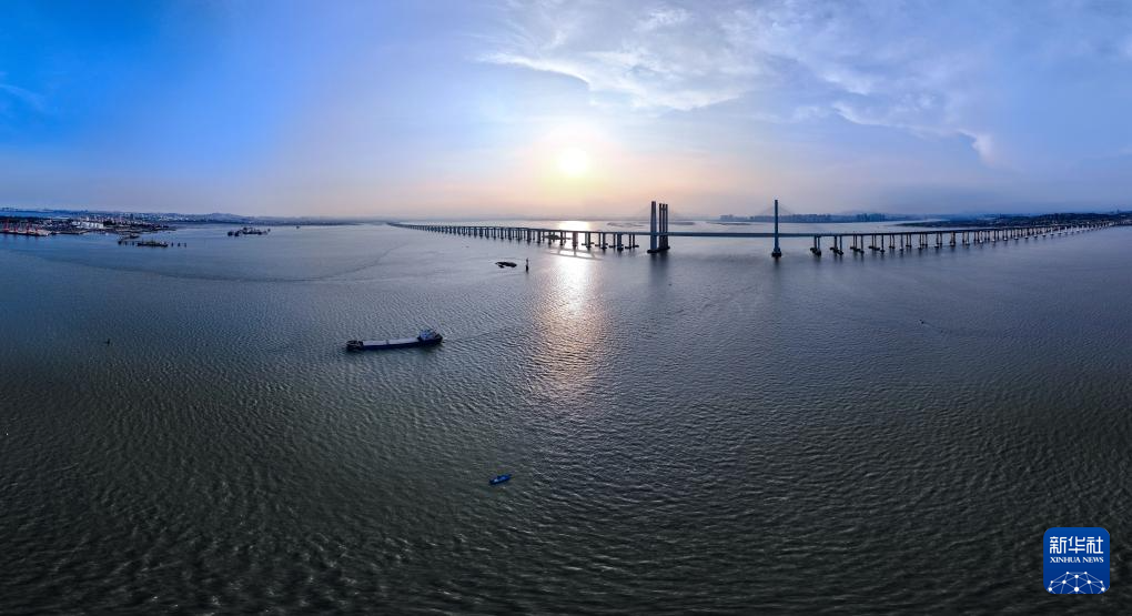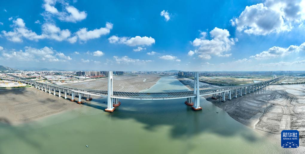 福厦高铁湄洲湾跨海大桥全景拼接图(9月15日摄,无人机照片)。新华社记者 魏培全 摄