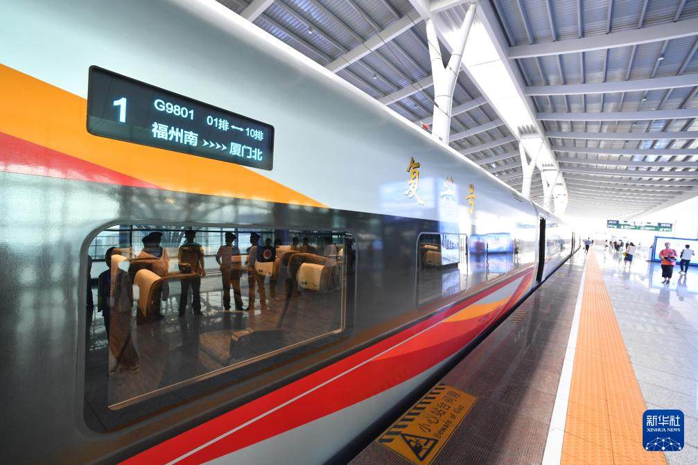 9月28日上午9时15分,福厦高铁首趟复兴号智能动车组G9801次列车从福州南站缓缓开出,一路南下,奔向厦门北站。这标志着中国首条时速350公里跨海高铁——福厦高铁正式开通运营。福厦高铁北起福州,途经莆田、泉州,南至厦门和漳州,全长277公里。开通后,福州至厦门的列车运行时间将从现在的2小时左右缩短至1小时以内,两地间形成“一小时生活圈”。