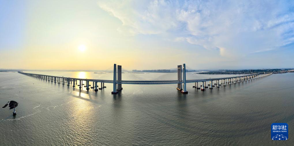 福厦高铁泉州湾跨海大桥全景拼接图(9月18日摄,无人机照片)。新华社记者 魏培全 摄