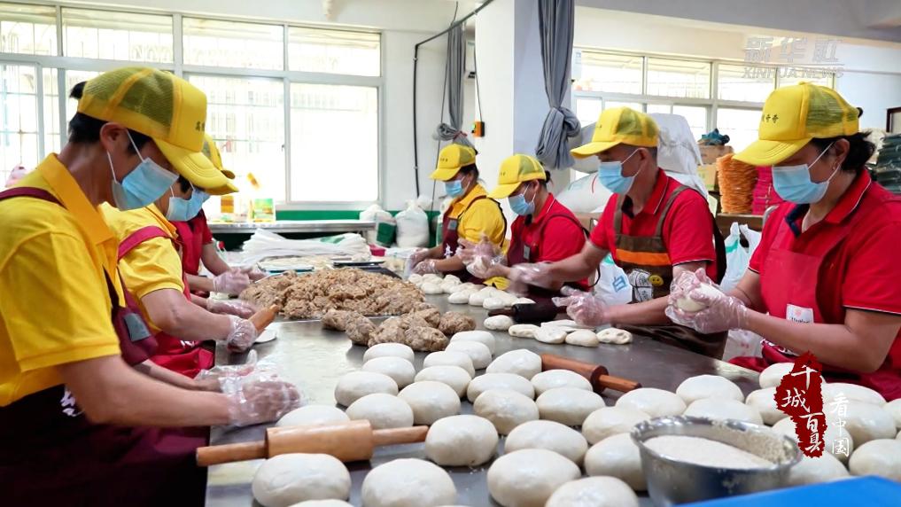 近日,在福建省龙岩市永定区高陂镇的一个食品厂,师傅们正忙着制作传统手工月饼,馅料调配、和面、包馅、压模、烘烤、出炉、包装……一盘盘泛着金黄油光的手工月饼散发着诱人的香气,着实让人垂涎。