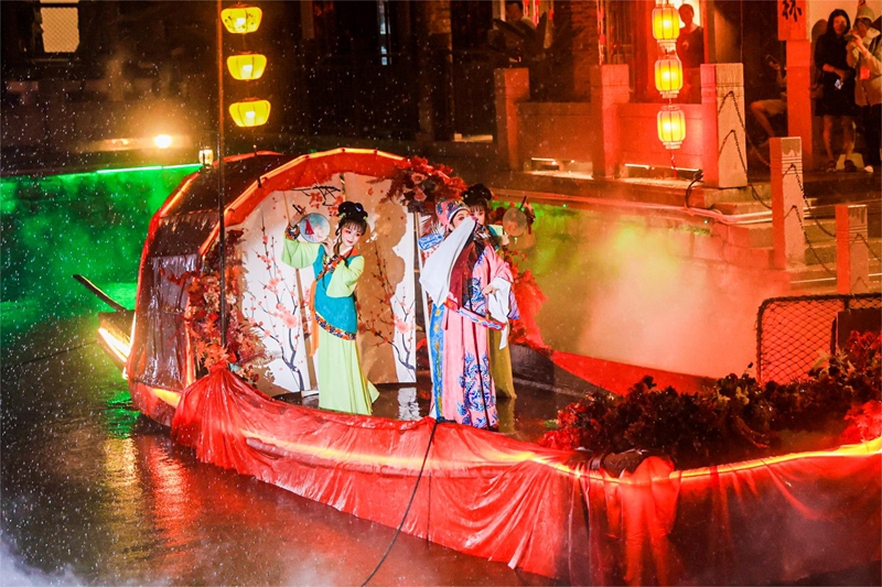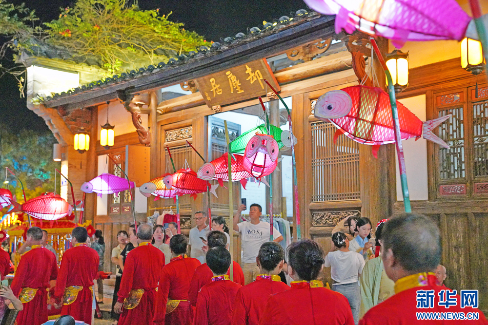 9月29日晚上,演员在集市上展演特色民俗活动。新华网发(泰宁县委宣传部供图)