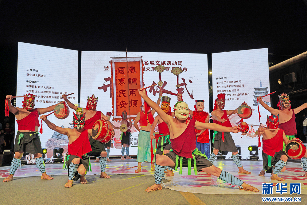 9月29日晚上举行的开市仪式上,演员在表演泰宁当地特色非遗项目大源傩舞。新华网发(泰宁县委宣传部供图)