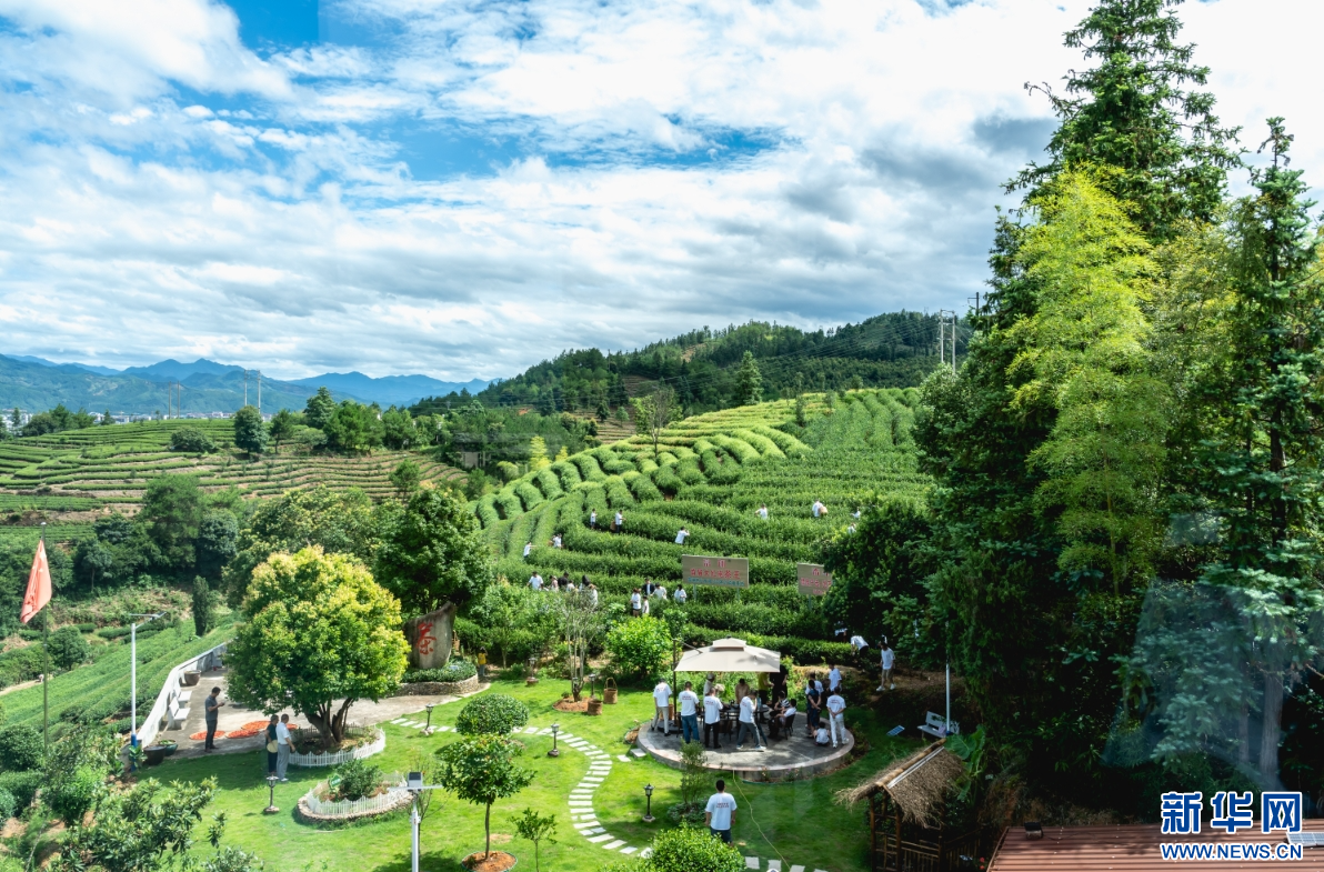 武夷岩茶的茶园不时吸引游客前来参观体验。新华网发(叶国宝 摄)