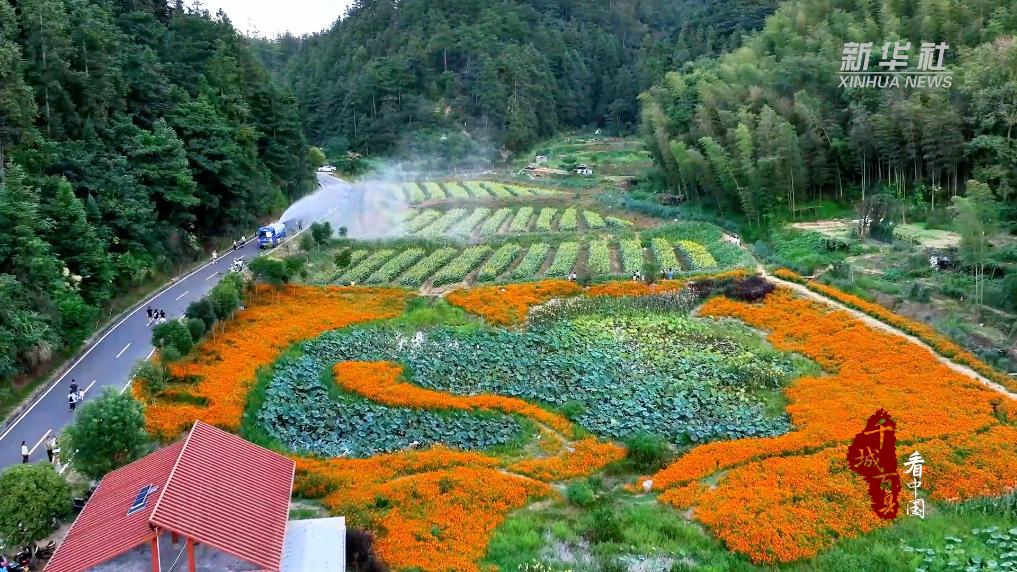 近日,福建邵武福山公园内,近30亩向日葵、矮生百日草、矮生硫华菊次第开放。远远望去,像一块块金黄色的地毯,与群山相映,与蓝天白云相配,构成了一幅绚丽夺目的秋日田园画卷。