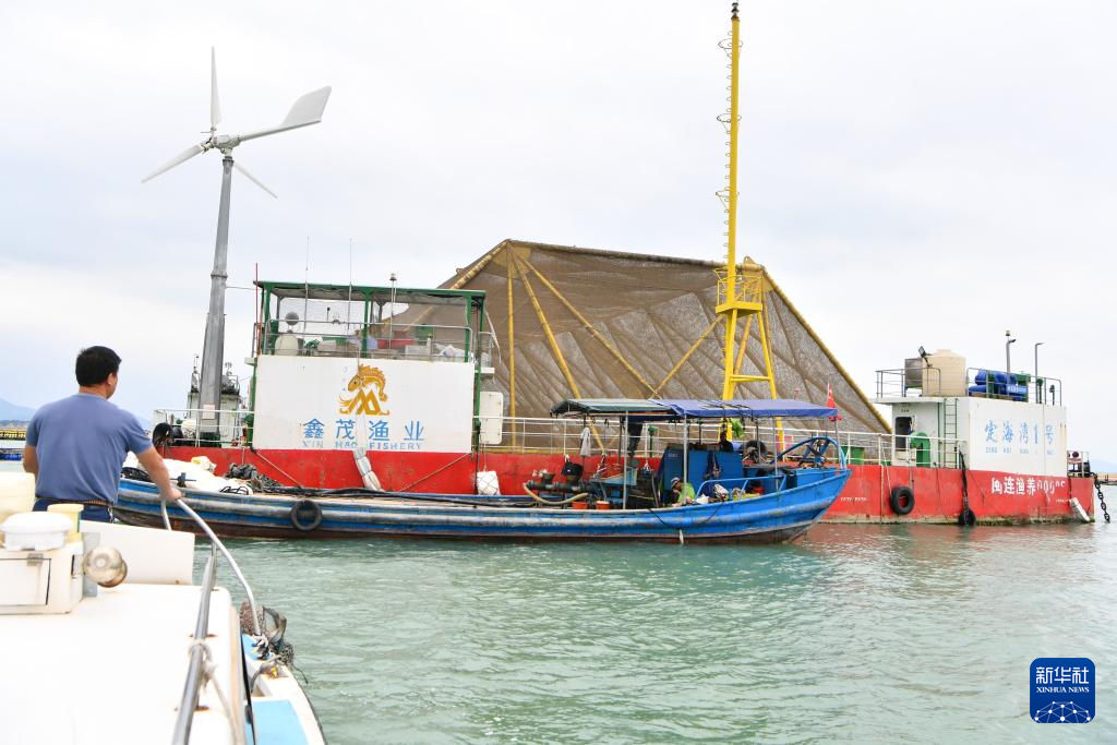 10月10日,游船驶向福建省连江县定海湾内的“定海湾1号”深远海养殖平台。新华社记者 姜克红 摄