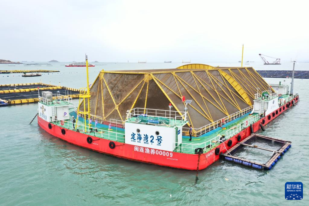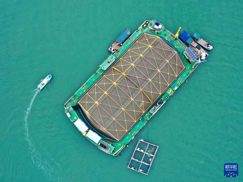 这是5月31日拍摄的福建省连江县定海湾内的“振渔1号”深远海养殖平台(无人机照片)。新华社记者 林善传 摄