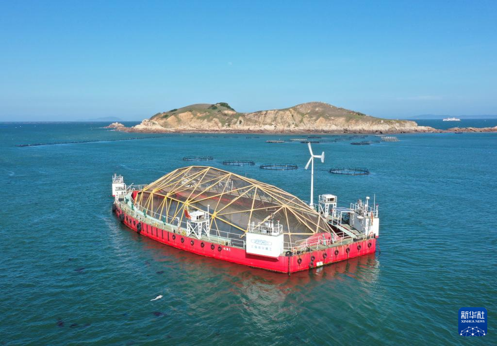 这是10月10日拍摄的福建省连江县定海湾内的“振渔1号”深远海养殖平台(无人机照片)。新华社记者 姜克红 摄