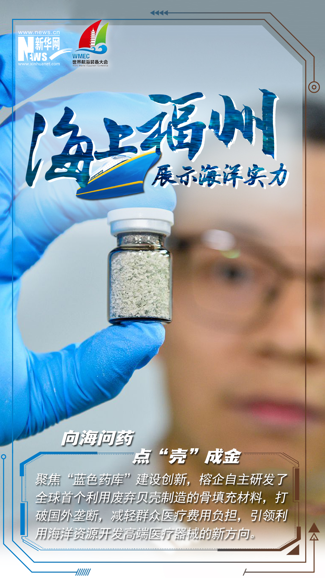 “蓝色药库”孕育海洋创新药物。在福州,沿海随处可见的废弃牡蛎壳,摇身一变从垃圾堆走向高端医疗器械市场,变得比黄金还贵,成功逆袭,在为“蓝色药库”增添创新精品的同时,变废为宝,解决环境污染问题。
