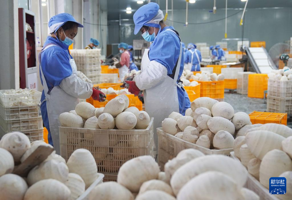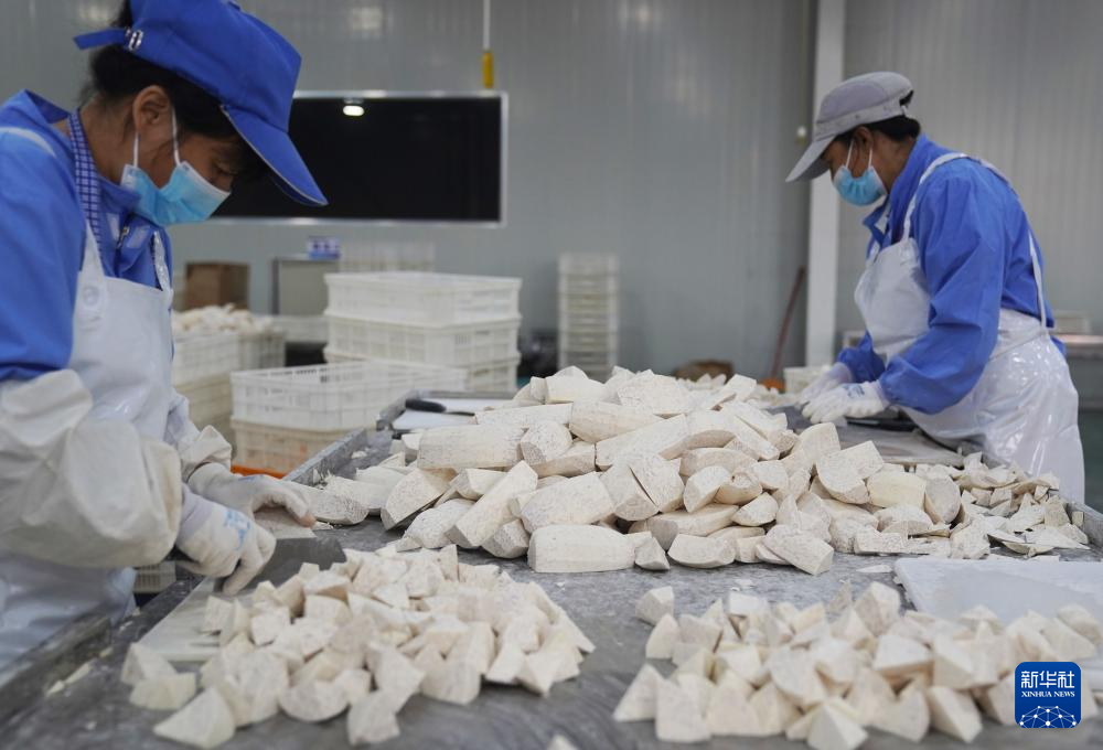 10月18日,在龙岩市长汀县一槟榔芋加工厂,工人在加工芋头。新华社发(梁志强摄)