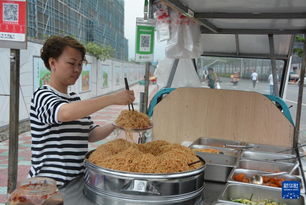 2023年5月16日,流动摊贩在厦门市海沧区一处临时摊规点上摆摊。新华社记者 颜之宏 摄