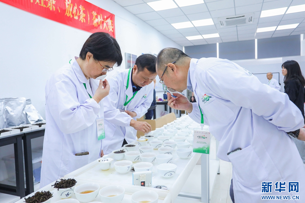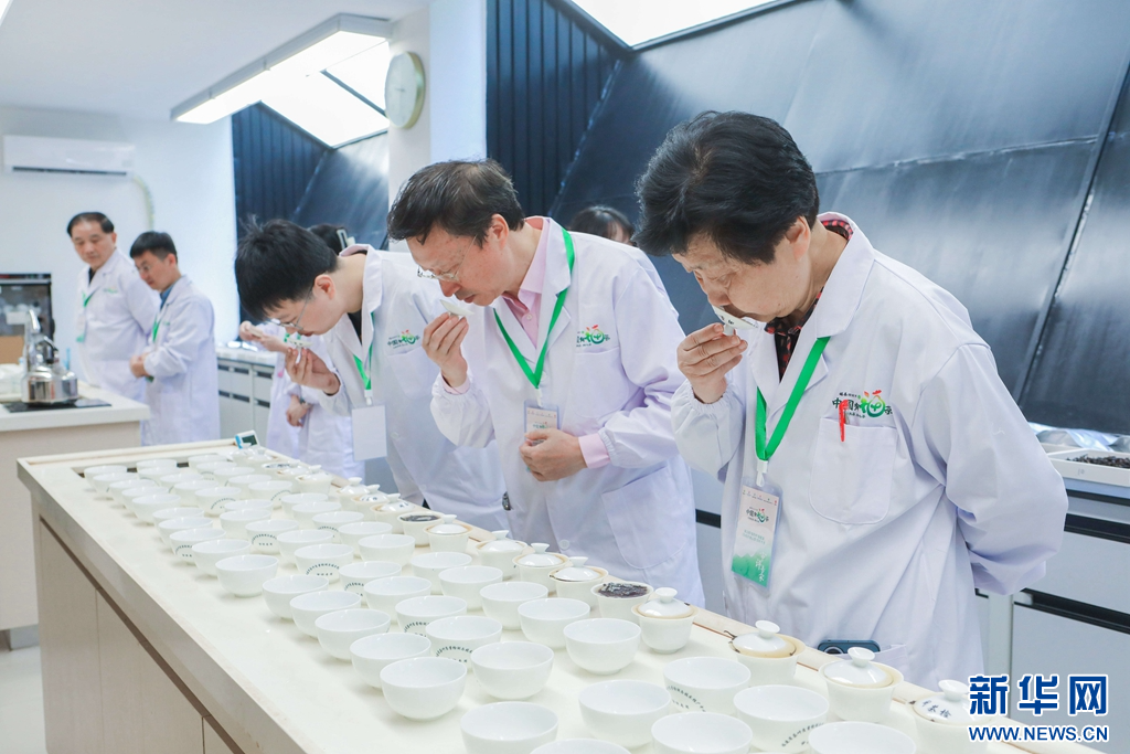茶叶审评专家们在细致地审评茶样。 新华网发(主办方供图)