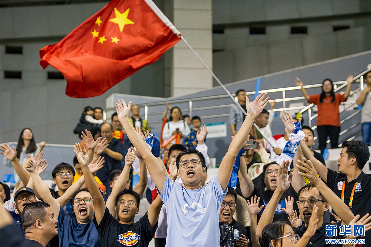 揭幕战现场,观众为东道主球队中国河海大学男队呐喊助威。新华网发(赛事组委会供图)