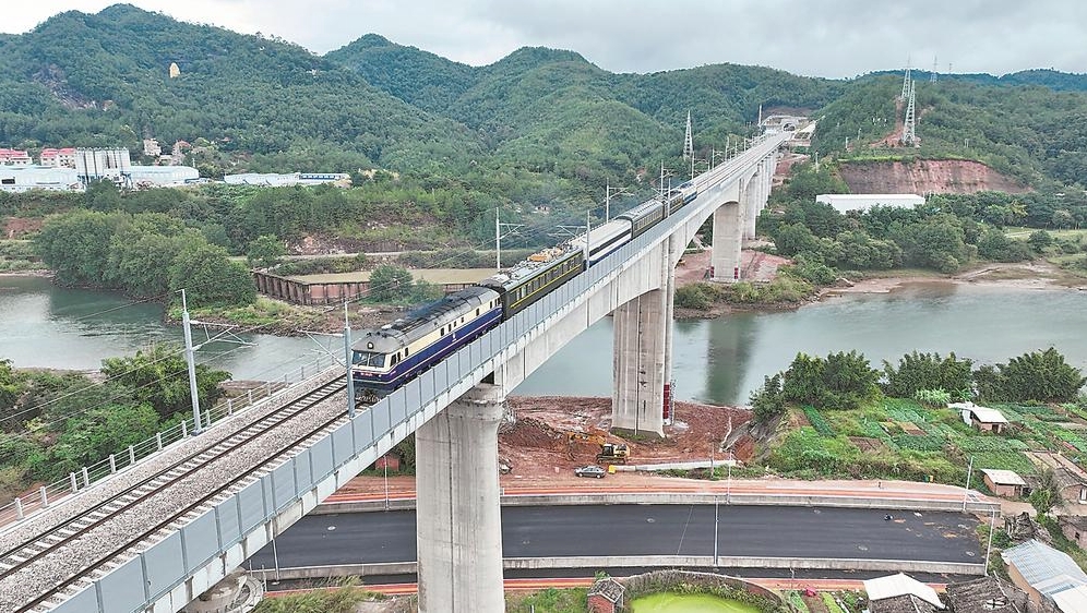 龙龙高铁福建段与南龙铁路、赣瑞龙铁路、龙厦铁路相连,将结束武平县无铁路的历史,进一步助力龙岩革命老区振兴发展,对加强福建、广东两省区域经济互助互通,促进东南沿海和粤港澳大湾区发展合作具有重要意义。图为检测列车正在通过汀江特大桥。(记者 张颖 通讯员 李翔 冯天翔 摄影报道)