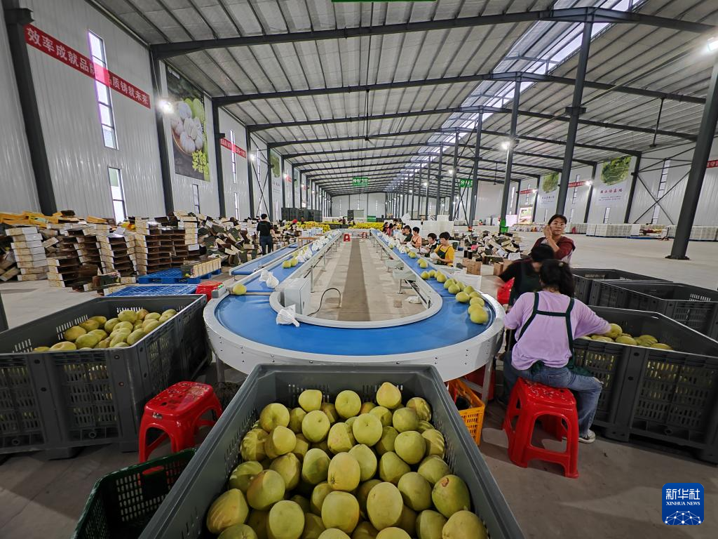 在利众果业包装车间,工人正在包装文旦柚。新华社记者 陈弘毅 摄
