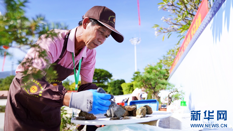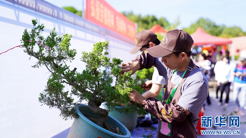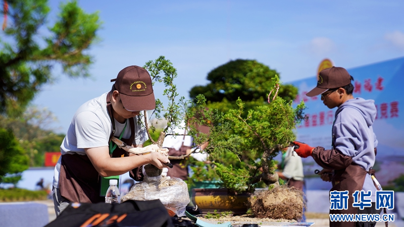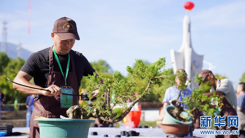 本次比赛设树桩盆景粗胚制作、水旱盆景制作2个项目。新华网发(林楷煜 摄)