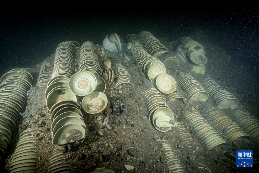 图为漳州圣杯屿元代沉船遗址船舱内码放的瓷器。新华社发(国家文物局供图)