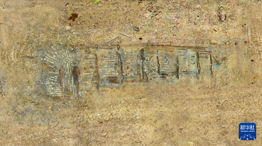 图为漳州圣杯屿元代沉船遗址第二层船载文物埋藏情况。新华社发(国家文物局供图)
