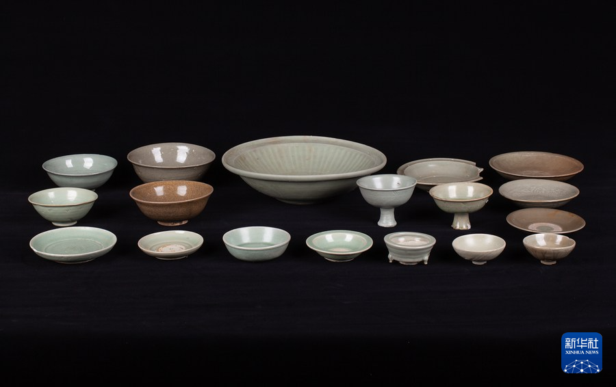 图为漳州圣杯屿元代沉船遗址出水的部分瓷器。新华社发(国家文物局供图)