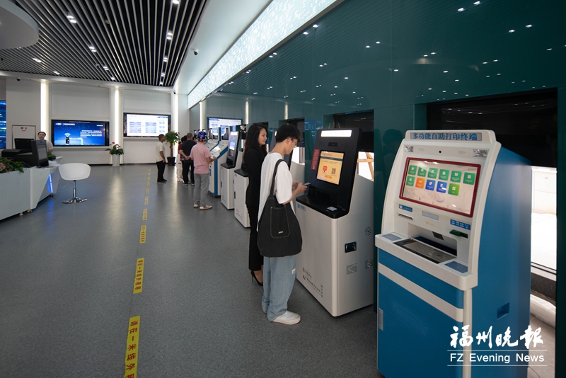 市民在福州市政务服务中心通过自助服务机办理业务。