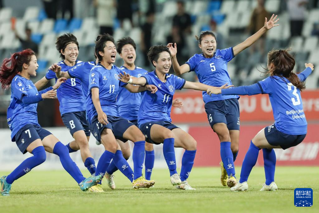 当日,在福建晋江举行的2023年国际大体联足球世界杯女子组决赛中,中国北京师范大学队通过点球大战以总比分7比6战胜巴西保利斯塔大学队,获得冠军。
