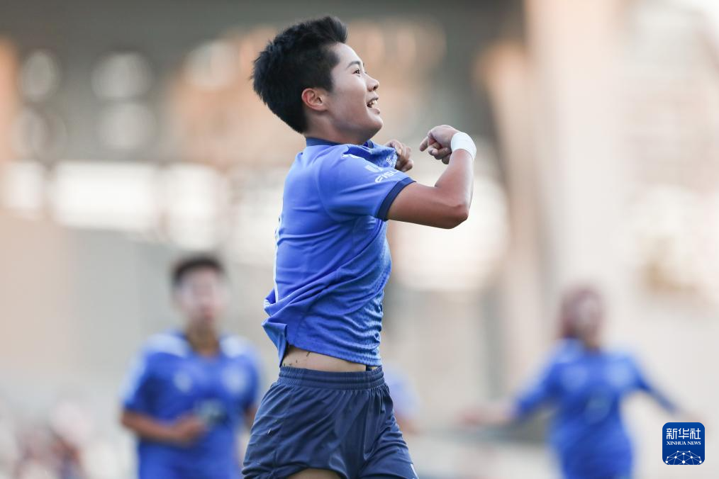 10月31日,北京师范大学女足球员周心雨庆祝进球。新华社发(赖进财摄)