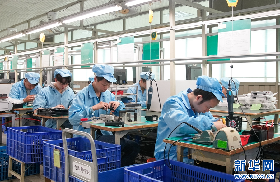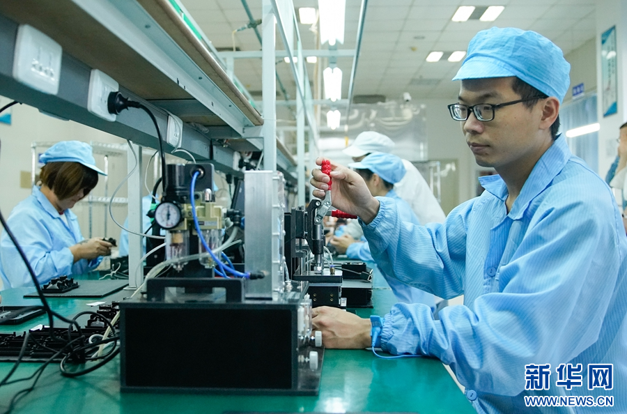 福建科立讯通信有限公司生产的防爆通信设备在业内处于技术领先水平。图为对讲机的装配生产线。新华网 蒋巧玲 摄