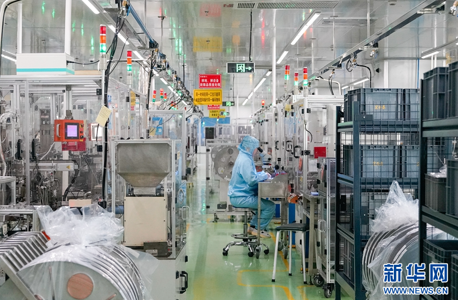 漳州宏发电声有限公司使用自主研发的自动化产线,每0.8秒即可组装完成一个继电器。新华网 蒋巧玲 摄