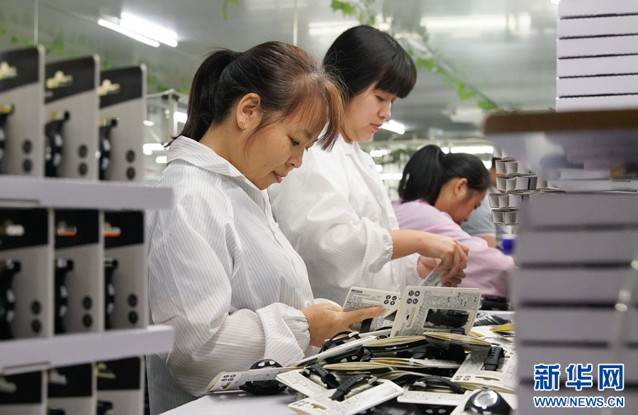 福建科立讯通信有限公司的生产车间里,一位女工正在专注地装配对讲机。新华网 蒋巧玲 摄