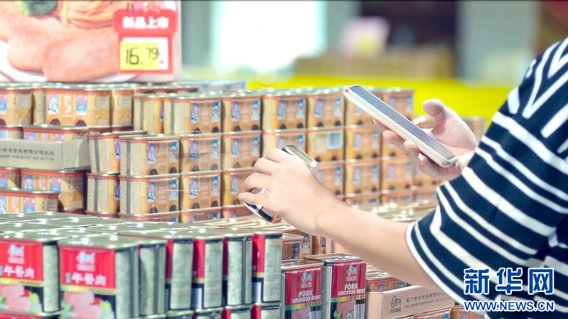 市民用手机查看商品溯源信息。新华网发(厦门市市场监督管理局供图)
