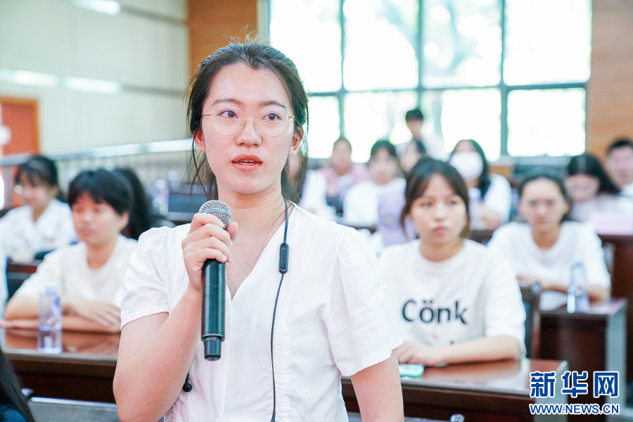 11月2日,福建江夏学院,一名学生在互动环节提问。新华网 肖和勇 摄